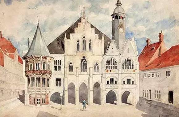 在与实物相比较时,人民会发现这幅画十分精确。正如一位评论家所说:“希特勒绘制了大量关于建筑物的作品,反映出他对建筑、教堂、公共建筑和城市景观的喜爱。”显然,希特勒喜爱的建筑物不包括犹太教堂。1938年9月9日,也就是所谓的“水晶之夜”,他下令摧毁了1000多个犹太人的祈祷场所和超过7000家犹太人的商店。