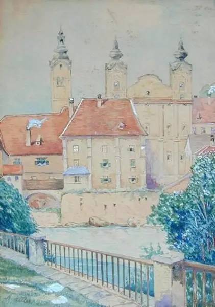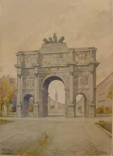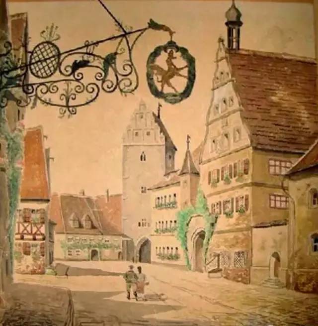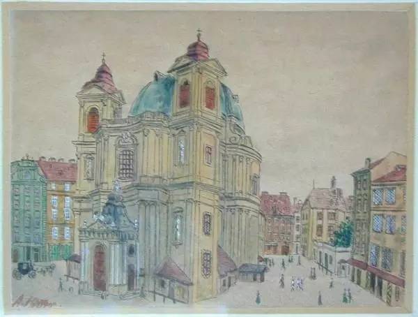这是另一幅希特勒在维也纳时期的作品,这幅作品的特殊之处在于,希特勒两次在这幅画上签名。每当想起这幅画的作者一夜之间烧毁95座犹太教堂,就让人感觉非常诡异。